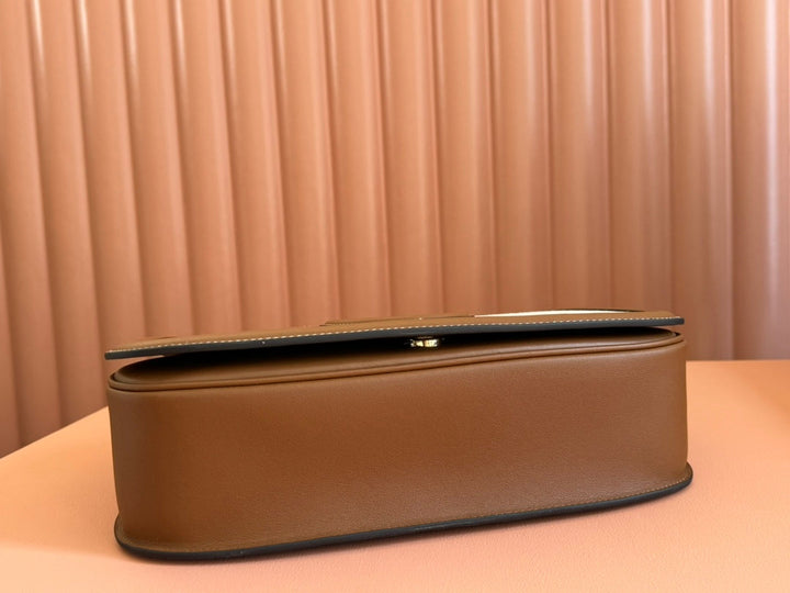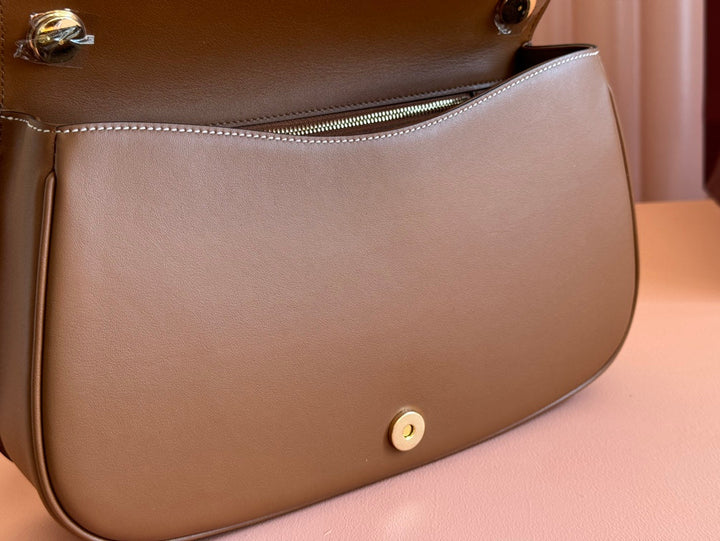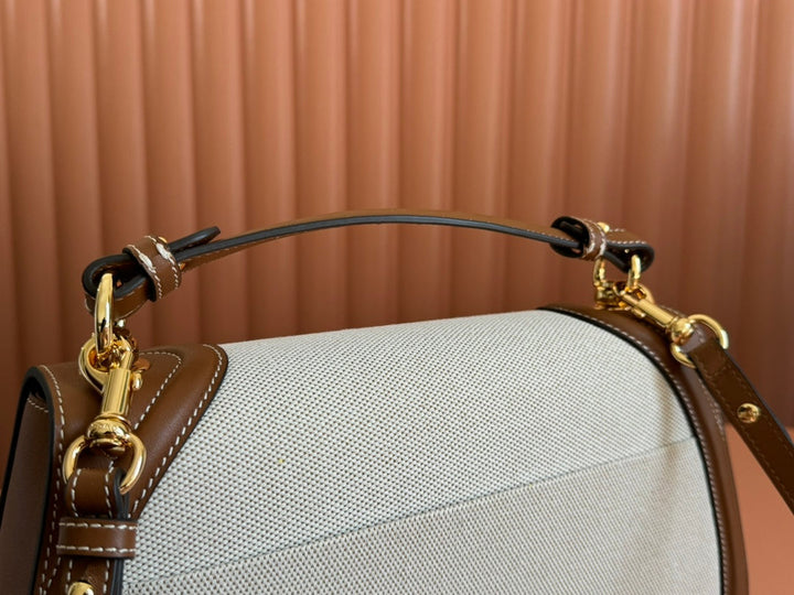 BLONDIE GROSSE TASCHE MIT HENKELTASCHEN 32 AUS NATÜRLICHEM BAUMWOLL-LEINEN-CANVAS UND BRAUNEM KALBSLEDER