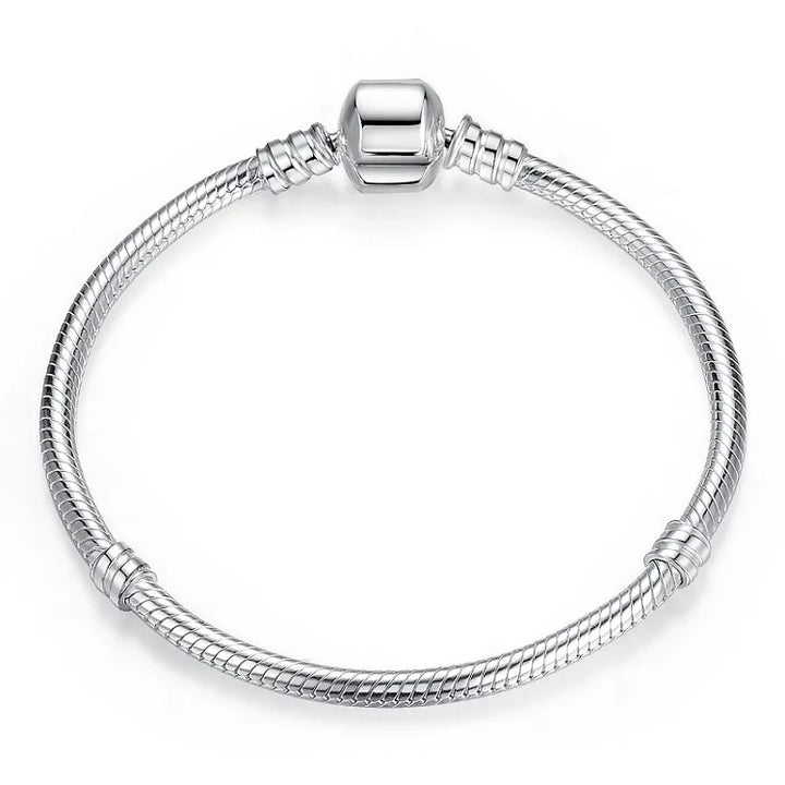 Beschreibung: Dieses 3 mm breite Schlangenarmband sieht schlicht, elegant und modern aus. Ob einzeln oder gestapelt getragen, sind silberne Armreifen ein zeitloses Modeaccessoire. Verwandeln Sie das Armband mit Ihren funkelnden Lieblingsanhängern vom Alltags- ins Abendkleid.