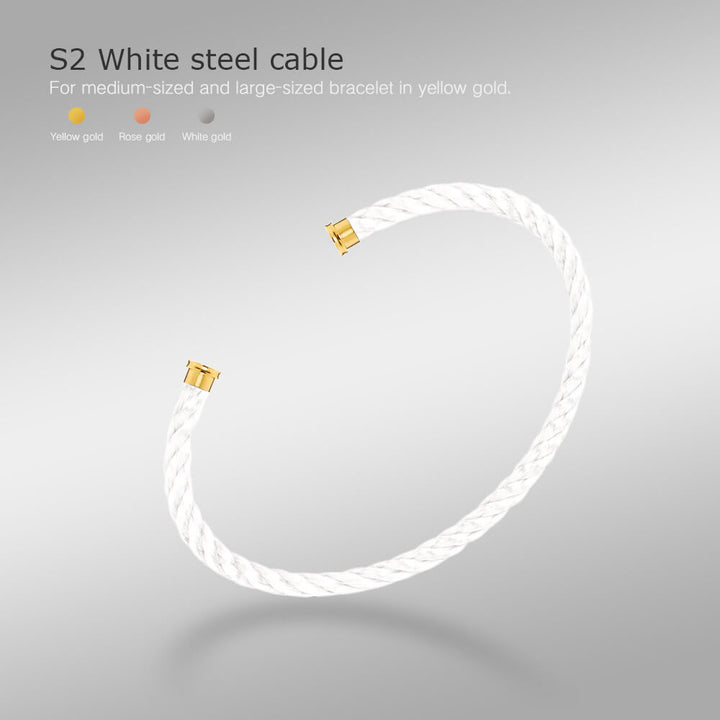 S1 Silbergraues Stahlkabel, S2 Weißes Stahlkabel, S3 Schwarzes Stahlkabel, S4 Gelbgold-Stahlkabel, S5 Roségold-Stahlkabel, S6 Grünes Stahlkabel, S7 Roségold und rotes Emblem-Stahlkabel, N1 Hellgraues Kabel, N2 Weißes Kabel, N3 Schwarzes Kabel, N4 Neonoranges Kabel, N5 Neonpinkes Kabel, N6 Hellblaues Kabel, N7 Rotes Kabel, N8 Granatkabel, N9 Marineblaues Kabel, N10 Türkises Kabel, N11 Blaues, weißes, rotes und schwarzes Emblemkabel |