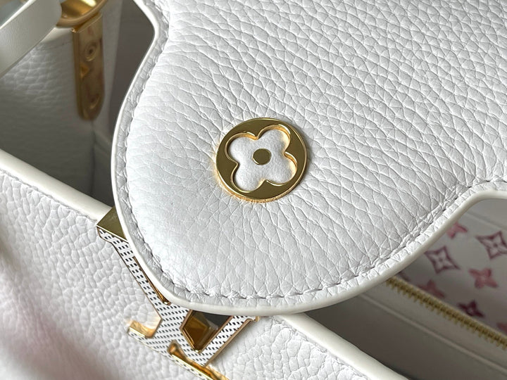 CAPUCINES BB 27 IN WHITE TAURILLON GOLD HARDWARE