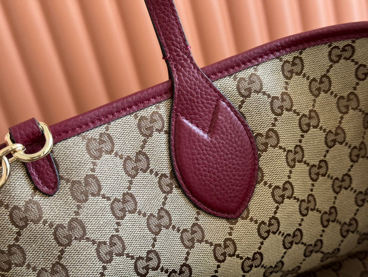 MEDIUM TOTISSIMA REVERSIBLE TOTE BAG 30 IN ROSSO ANCORA RED CALFSKIN BEIGE AND BROWN GG CANVAS ON SIDE