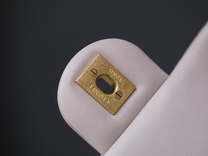 - Color: Light Pink leather, Gold hardware